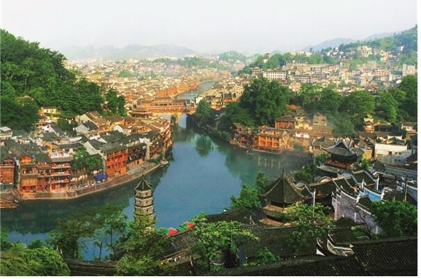 如今的凤凰古城多了几分现代气息,沱江两岸的建筑修葺一新,虹桥上一座风雨楼拔地而起。