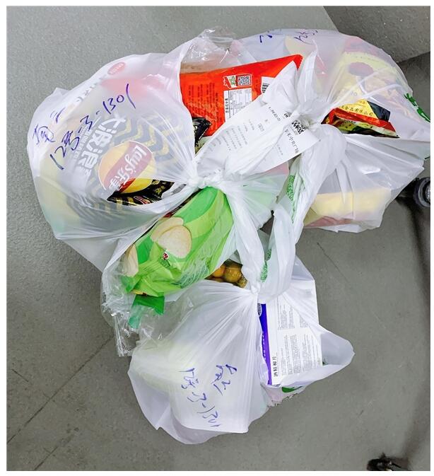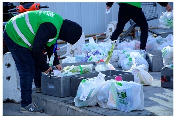 但新的困难很快出现了,不少顾客向七鲜客服热线反映:购买的商品出现了漏送的情况。客服急速处理、协调补送,曹运军也带着大家复盘,发现原因出自配送的最后一个环节。七鲜配送员只能送到隔离社区门口,再由社区志愿者送货到户。顾客购买的东西很多,四五个大号塑料袋共用一张订单小票,而志愿者往往把系在一起的四五个塑料袋解开以便送到各家各户,因此出现送漏拿错的情况。