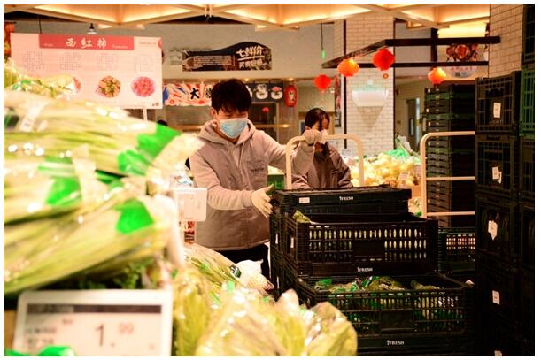 新闻发出的同时,曹运军就先后接到了北京市大兴区商务局和集团的通知,七鲜超市作为周边民生重点的保障单位,全面肩负起这次居家隔离居民的保供任务。这样一来,泰禾中央广场店和大悦春风里店不仅要承担起日常服务周围居民的重任,还要成为保障四大社区周边18个隔离小区超过2万户居民生活物资供应的“生命线”。
