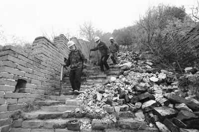 千百年户外风吹雨淋,加上一些人为破坏,这段长城大部分区域城砖坍塌严重。张彤介绍,针对病害和残损的特点,会采取不同的保护方法和技术,即在遵循文物保护原则的前提下,对文物本体采取有效的手段进行保护和加固。在文物部门给出的“医嘱”中特别明确,不过分修缮。此前国家文物局经过梳理发现,很多地方只是将长城理解为一种资源去利用,将其形象固化为八达岭的样子,修缮时就会出现偏差;对于长城完整性和真实性的理解也有偏差。
