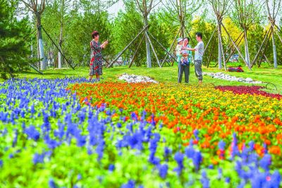 今天上午,京南最大、占地面积约5508亩的大兴狼垡城市森林公园向市民开放。图为市民在公园游玩。 本报记者 武亦彬 摄