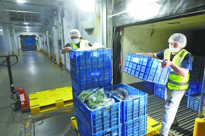 平谷马坊进京蔬果中转储运站启用,昨日,在储运站冷藏库内,工作人员正在搬运蔬菜。该站从6月18日筹备改造,23日开始正式运营,24小时全天候开放,为进京蔬果提供中转储运服务。本报记者 白继开 摄