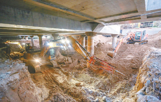 记者昨天在现场看到,不同于一般工程从基坑施工做起,东四站“织补”项目先亮出的是地下空间的顶板,建设工人正操作着机械设备在顶板之下忙碌着。