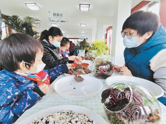 龙潭公园园艺驿站昨天挂牌,孩子们在学习园艺知识。何建勇摄