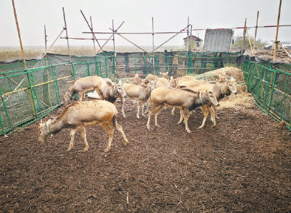 据了解,不算即将野放的10只麋鹿,洞庭湖畔的麋鹿种群数量就已经超过了200只。从北京运输而来的麋鹿,脖子上都带有一个具备GPS定位功能的项圈,便于工作人员开展野放麋鹿在洞庭湖区域迁徙行为的研究。本报记者 陈强