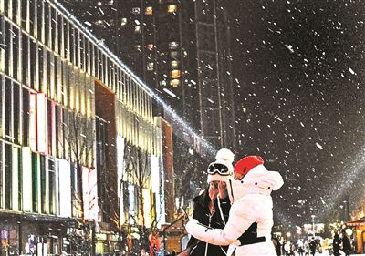 受东移高空槽影响,昨天傍晚前后本市大部分地区出现小雪,北部地区局地达中雪。昨天15时至21时,全市平均降雪量0.7毫米,城区平均0.5毫米,最大降雪出现在昌平长峪城,为5.6毫米。北京市气象台已于12日16时发布大风蓝色预警信号。预计13日白天,本市有四五级偏北风,阵风可达七八级,山区可达9级左右;13日傍晚风力逐步减小。根据最新气象资料分析,13日气温明显下降,预计平原地区白天最高气温-1℃左右,夜间最低气温-9℃左右。14日至16日气温持续较低,17日气温小幅回升。气象部门提醒市民,雪后道路湿滑,出行请注意安全,尽量选择公共交通工具。今日白天阵风较大,气温持续较低,请做好防风、防寒、保暖,以防感冒。图为游客在望京小街商业区赏雪。文/本报记者 解丽 摄影/本报记者 崔峻