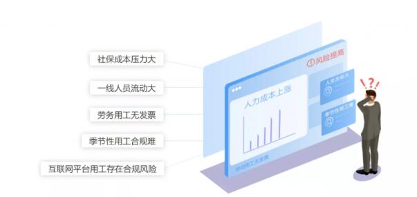 随着2019两会定调支持共享经济灵活就业以来,以微商、外卖、快递为代表的一众零工经济行业迎来了繁荣发展。然而,社保成本压力大、一线人员流动大、劳务用工无发票等难题持续困扰着该领域企业的发展。