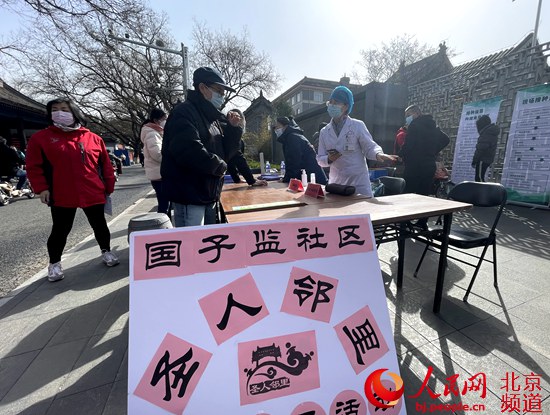 在国子监街上,工作人员通过现场宣讲互动,张挂宣传条幅海报、摆放宣传展板、发放宣传品等形式,让来参与此次活动的居民和游客了解疫苗接种的最新信息,科普宣传新冠疫苗接种人群要求、注意事项等,倡导群众积极参与接种新冠疫苗。