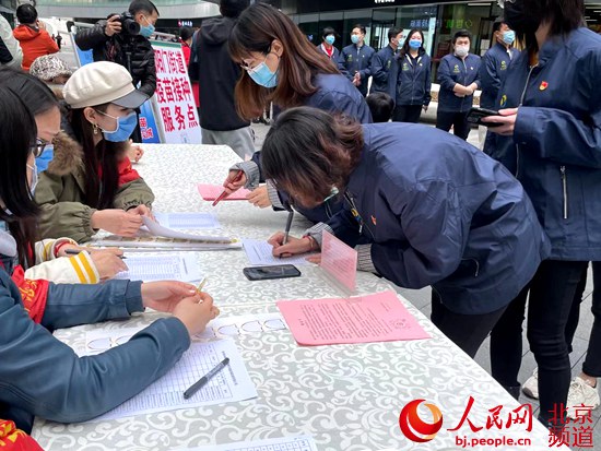 (池梦蕊)3月29日,东城区朝阳门街道在银河SOHO下沉广场开展了新冠疫苗接种集中宣传活动。现场,为辖区商务楼宇内企业员工发放新冠疫苗接种倡议书和新冠疫苗接种手机贴。一个小小的盾形手机便利贴,主体位置上,蓝色字体写着 “我已接种疫苗”,下方的黑色字体写着“接种新冠疫苗 共筑免疫长城”,再下面,则是各商务楼宇的名称。只要将这张小标识贴在手机背面即可,简单方便。