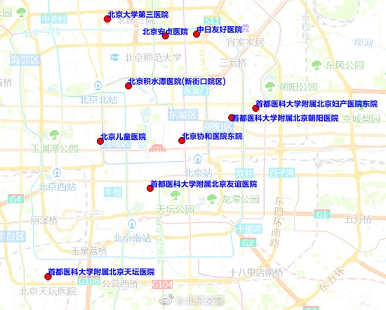 据北京市交管局官方微博发布,气温回升,季节性疾病多发,预计安贞医院、妇产医院、儿童医院、北医三院、积水潭医院等医院周边道路和桥区节点将出现车流集中的情况,高峰时段为上午7时至10时,建议适时避开医院周边行驶缓慢的道路。