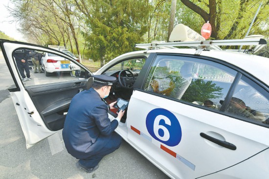 今天上午,北京市生态环境部门会同公安部门组织开展驾校汽油车入户专项执法行动,环保执法人员对驾校车辆进行排放检测。 本报记者 邓伟 摄